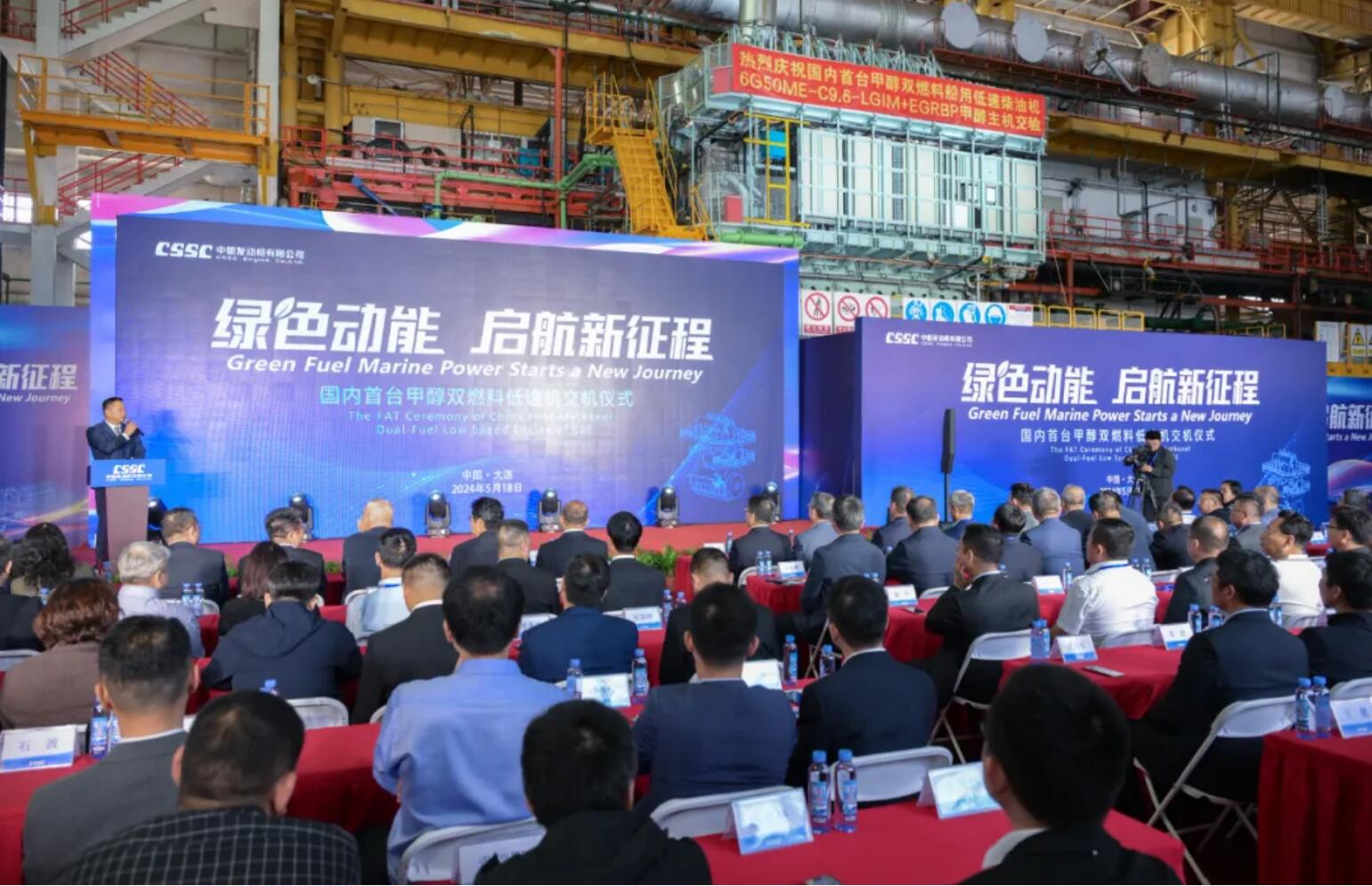 孟夏之日,萬物并秀。5月18日,備受矚目的國內首臺甲醇雙燃料低速機—6G50ME-C9.6-LGIM+EGRBP交機儀式在中國船舶集團中船發(fā)動機(CSE)成功舉行。中國船舶集團有關部門領導,政府機關領導,船東、船廠、船級社及專利方有關領導和代表等出席了交機儀式,共同見證中國甲醇雙燃料低速機制造實現(xiàn)從“無”到“有”這一里程碑時刻。
