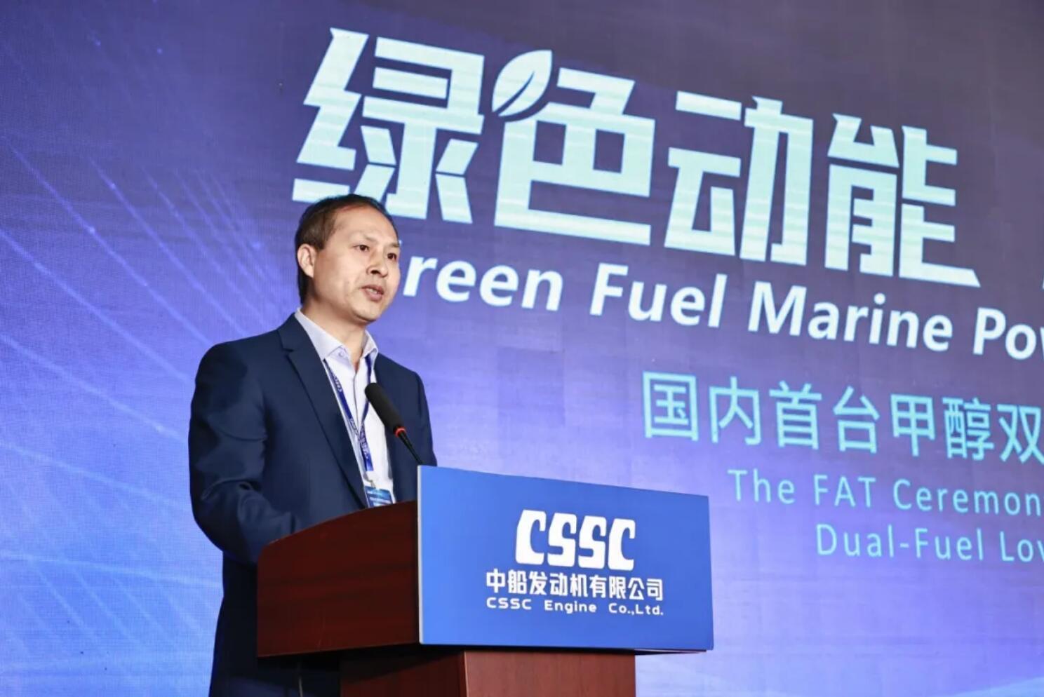 中船發(fā)動機黨委書記、董事長付向昭熱情洋溢的歡迎辭拉開了交機儀式的序幕,在中船發(fā)動機黨委副書記、總經(jīng)理楊小強的主持下,集團主管部門領導、BV船級社和船廠代表分別致辭,中國船舶集團綜合技術經(jīng)濟研究院副院長包張靜作《綠色船用動力發(fā)展趨勢與市場機遇》報告,中船發(fā)動機黨委委員、副總經(jīng)理陳義仿介紹了中船發(fā)動機低碳零碳發(fā)動機布局及國內首臺甲醇雙燃料低速機的研制過程。隨著推桿儀式的成功完成,整個交機儀式被推向了高潮,現(xiàn)場氣氛熱烈高漲,與會嘉賓一齊鼓掌,慶祝國內首臺甲醇雙燃料低速機成功交驗!