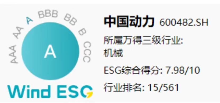 近日,知名權(quán)威ESG評級機構(gòu)萬得(Wind)更新了中船集團旗下中國動力最新一期的ESG評級結(jié)果,中國動力憑借在ESG領(lǐng)域的實踐和成效,榮獲“A”級評級,綜合得分在機械行業(yè)561家上市公司中位居第15位。