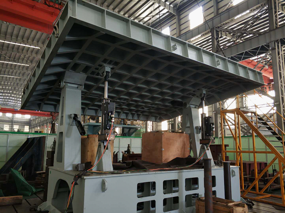 搖擺模擬平臺由兩個單缸16噸推力的電動缸驅(qū)動,通過電動缸的運動帶動搖擺平臺轉(zhuǎn)動??梢愿鶕?jù)實際需要,改變搖擺幅度和搖擺周期,或以隨機幅值和周期運動,以實現(xiàn)對海浪的模擬。