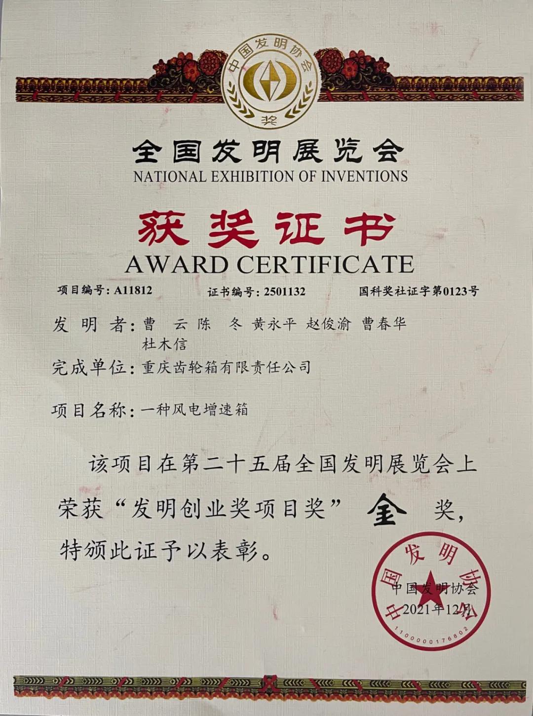 在剛剛閉幕的第25屆全國(guó)發(fā)明展覽會(huì)上,中國(guó)船舶集團(tuán)旗下中國(guó)動(dòng)力子公司重齒公司的發(fā)明專利“一種風(fēng)電增速箱”榮獲“中國(guó)發(fā)明創(chuàng)業(yè)獎(jiǎng)項(xiàng)目獎(jiǎng)”金獎(jiǎng)。本次獲獎(jiǎng)項(xiàng)目是具有公司自主知識(shí)產(chǎn)權(quán)的一項(xiàng)專利技術(shù),該專利主要保護(hù)一種應(yīng)用于大功率海上風(fēng)力發(fā)電機(jī)組,外形尺寸較小、可靠度高、維護(hù)方便的風(fēng)電增速箱。