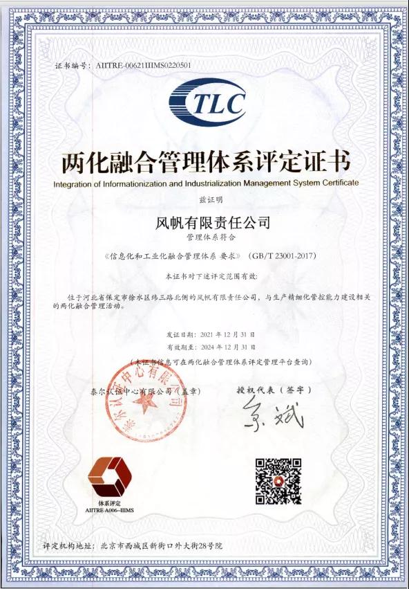 通過(guò)兩化融合管理體系認(rèn)證,標(biāo)志著風(fēng)帆公司在推進(jìn)工業(yè)化和信息化融合方面取得了新突破,在持續(xù)優(yōu)化管理,深入貫徹融合和創(chuàng)新理念的過(guò)程中,風(fēng)帆公司力爭(zhēng)保持可持續(xù)競(jìng)爭(zhēng)優(yōu)勢(shì),強(qiáng)化信息化環(huán)境下的新型能力。