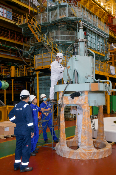 在9X92-B HP-SCR主機(jī)進(jìn)入最關(guān)鍵的調(diào)試交驗(yàn)階段,正值大連市新一輪疫情爆發(fā),大柴公司按照疫情防控要求,實(shí)行了廠區(qū)封閉管理。經(jīng)過周密部署,強(qiáng)化防控措施,堅(jiān)持統(tǒng)籌安排、分類施策,由公司領(lǐng)導(dǎo)班子率先垂范,帶領(lǐng)各部門黨員干部、骨干人員主動(dòng)擔(dān)當(dāng),留守公司,多方協(xié)調(diào),晝夜奮戰(zhàn),將主機(jī)調(diào)整至最優(yōu)狀態(tài),最終圓滿交付。大柴公司積極踐行以客戶為中心的理念和專業(yè)、高效、擔(dān)當(dāng)?shù)木C合服務(wù),贏得了船東、船檢和船廠的好評(píng)。