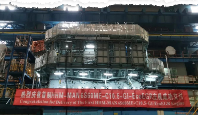 2023年2月25日,中國動力子公司中船動力集團(tuán)下屬滬東重機(jī)有限公司鎮(zhèn)江生產(chǎn)基地首臺6S60ME-C10.5-GI-EcoEGR正式提交。