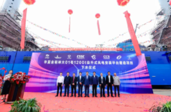 武漢船機(jī)公司副總經(jīng)理孫凱在下水儀式上發(fā)表講話,“華夏金租1200T 風(fēng)電安裝平臺是我司承接的最新一代圓柱樁腿風(fēng)電安裝平臺,也是目前國內(nèi)作業(yè)水深最大、樁腿最長、主吊機(jī)吊高最高、功能最全、效率最高的圓柱樁腿風(fēng)電安裝平臺,該平臺不僅綜合性能行業(yè)領(lǐng)先,又充分兼顧了經(jīng)濟(jì)效益,對公司打造經(jīng)典產(chǎn)品、引領(lǐng)未來市場發(fā)展具有重要的戰(zhàn)略意義?!?