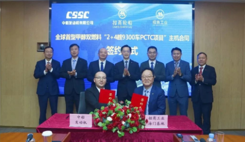 4月27日,全球首型甲醇雙燃料PCTC (汽車運(yùn)輸船)“2+4艘9300車”項(xiàng)目主機(jī)簽約儀式在招商工業(yè)舉行,中船發(fā)動機(jī)黨委書記、董事長付向昭、招商輪船總經(jīng)理王永新、總輪機(jī)長吳建移、招商工業(yè)財務(wù)總監(jiān)黃鎮(zhèn)洲等各方代表在簽約現(xiàn)場共同見證。