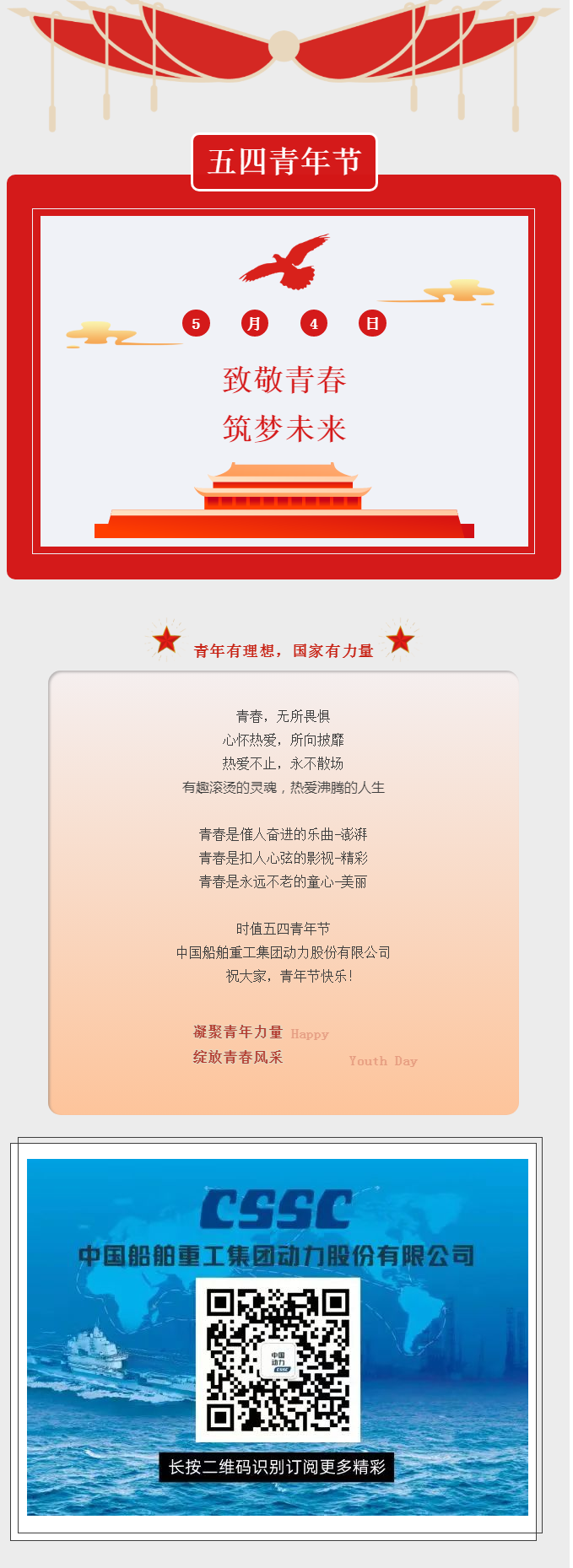 中國船舶重工集團(tuán)動力股份有限公司祝您五四青年節(jié)快樂!