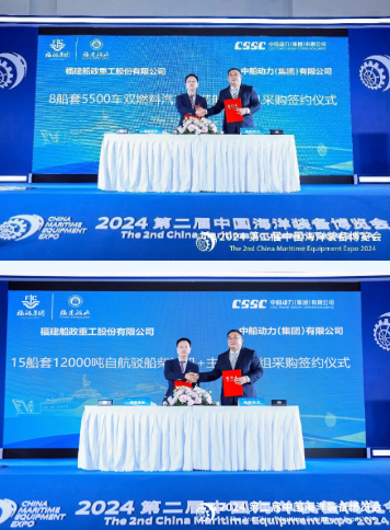 大會(huì)期間,中船動(dòng)力與福建船政重工股份有限公司簽訂8船套 5500PCTC汽車(chē)滾裝船主機(jī)采購(gòu)協(xié)議及15船套12000噸自航駁船主機(jī)+主發(fā)電機(jī)組采購(gòu)協(xié)議。其中,12000噸自航駁船主機(jī)+主發(fā)電機(jī)組共計(jì)75臺(tái)中速機(jī),創(chuàng)下了雙方合作以來(lái)單批次簽單歷史新高,進(jìn)一步加深了雙方在綠色動(dòng)力領(lǐng)域的合作。