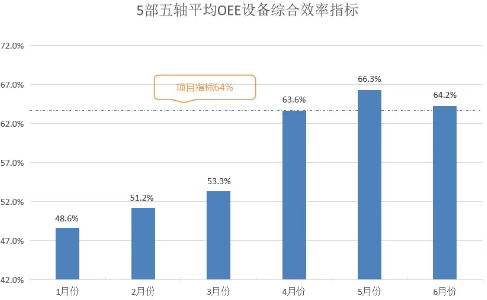 經(jīng)過改善課題小組6個(gè)月的專項(xiàng)攻關(guān),五軸加工中心OEE提升實(shí)現(xiàn)三級(jí)跨越。核心指標(biāo)突破,OEE由48%提升至64%,年度釋放產(chǎn)能價(jià)值約320萬(wàn);過程浪費(fèi)銳減,非增值時(shí)間占比從52%降至36%;組織動(dòng)能迸發(fā),員工提交改善提案20項(xiàng),采納19項(xiàng),員工改善熱情提升;工作機(jī)制初步建立,未來(lái)可在其他加工生產(chǎn)設(shè)備上推廣應(yīng)用,推動(dòng)加工效率的長(zhǎng)效躍升。