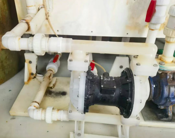 此前,分公司稀硫酸配制工藝過程中使用美國進(jìn)口氣動隔膜泵,但膜片和鋁碗在長期運(yùn)行中頻繁出現(xiàn)貼合部位松動漏酸問題, 2023年因漏酸問題更換了6臺進(jìn)口泵,維修費(fèi)用高達(dá)8.1萬元,不僅增加了生產(chǎn)成本,還影響生產(chǎn)的連續(xù)性。