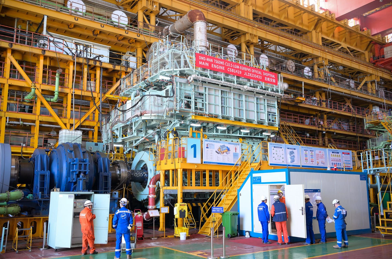 10月26日,隨著船東船檢在《主機試車報告》和《議定書》上簽字,中船集團旗下中國動力子公司中船發(fā)動機首臺7S60MEC-LGIM-EGRBP左舷甲醇雙燃料主機順利交驗。