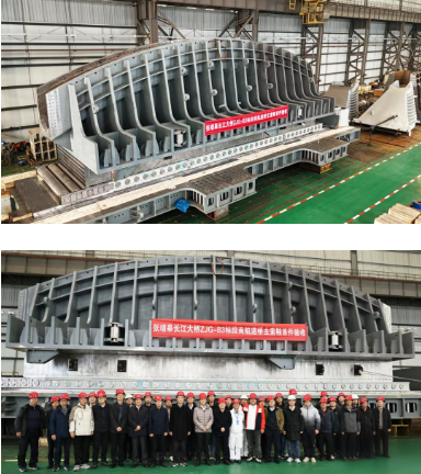張靖皋長江大橋南航道橋首創(chuàng)了懸索橋主纜纜力自平衡結(jié)構(gòu)體系,在主纜與索塔間設(shè)置了可自由滾動的“自行走滾軸式主索鞍”,大幅優(yōu)化了索塔結(jié)構(gòu)受力。主纜纜力自平衡的實現(xiàn),關(guān)鍵構(gòu)件是主索鞍的滾軸系統(tǒng),通過滾軸在上承板箱體、下承板之間的滾動,自適應(yīng)主纜纜力的變化。滾軸系統(tǒng)的結(jié)構(gòu)設(shè)計和功能要求,對制造的性能指標(biāo)提出了極高的要求。公司開展?jié)L軸硬板熱處理、安裝平面度、運行防護(hù)等多項專項工藝研究,攻克了主索鞍滾軸系統(tǒng)制造的難題。同時,中船武漢船機(jī)將智能制造和精益管理應(yīng)于主索鞍制造加工全過程,助力中國橋梁建設(shè)從規(guī)模領(lǐng)先邁向技術(shù)引領(lǐng),為世界橋梁工程提供了全新的工程范本。