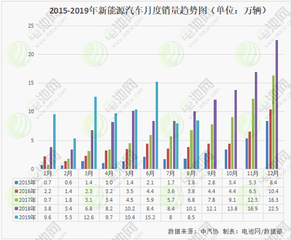 根據(jù)中汽協(xié)公布的產(chǎn)銷數(shù)據(jù)顯示:2019年8月,我國新能源汽車產(chǎn)銷分別完成8.7萬輛和8.5萬輛,比上年同期分別下降12.1%和15.8%。1-8月,新能源汽車產(chǎn)銷分別完成79.9萬輛和79.3萬輛,比上年同期分別增長31.6%和32.0%。在補貼退坡+車市寒冬雙重因素作用下,新能源汽車繼今年7月銷量出現(xiàn)首次同比下滑后,8月份新能源汽車產(chǎn)銷同比繼續(xù)下降,且降幅擴大。新能源汽車市場表現(xiàn)的疲態(tài),對鈷市行情有較大利空。2019年全年的新能源汽車銷量仍有較大增長,新能源汽車對鈷市需求仍有一定的支撐作用。