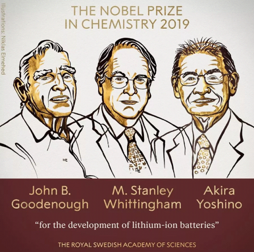 2019年諾貝爾化學(xué)獎授予John B. Goodenough, M. Stanley Whittingham, Akira Yoshino,以表彰他們在鋰電池領(lǐng)域的貢獻(xiàn)。