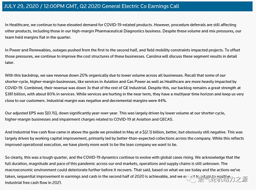 Courtesy: www.ge.com該公司在7月29日的10-Q文件中指出:“由于油價和經(jīng)濟放緩,客戶預(yù)算緊縮,融資渠道受限,特別是在天然氣發(fā)電領(lǐng)域,我們完成交易的能力受到了影響。”“展望未來,我們預(yù)計電力市場繼續(xù)受到產(chǎn)能過剩的影響,增加維修安裝基礎(chǔ),價格競爭的壓力和不確定的交易時機關(guān)閉由于融資和在新興市場和正在進行的工作的復(fù)雜性COVID-19的影響。市場因素,如提高能源效率和可再生能源普及率繼續(xù)影響長期需求,”它表示。