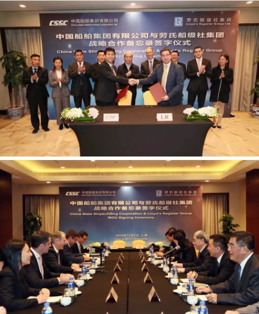 ????12月2日,中國船舶集團(tuán)有限公司與勞氏船級社集團(tuán)在上海簽訂戰(zhàn)略合作備忘錄,標(biāo)志著雙方的合作開啟了新的歷史篇章。中國船舶集團(tuán)董事長雷凡培,副總經(jīng)理孫偉、姜仁鋒,勞氏船級社集團(tuán)首席執(zhí)行官Alastair Marsh共同見證雙方簽約。中國船舶集團(tuán)副總經(jīng)理杜剛、勞氏船級社集團(tuán)船舶與海工總裁Nick Brown分別代表雙方在備忘錄上簽字。簽約前,雙方圍繞全球船舶海工市場及技術(shù)發(fā)展趨勢作了交流,就進(jìn)一步加強(qiáng)交流溝通、深化戰(zhàn)略合作進(jìn)行了深入探討并達(dá)成廣泛共識。
