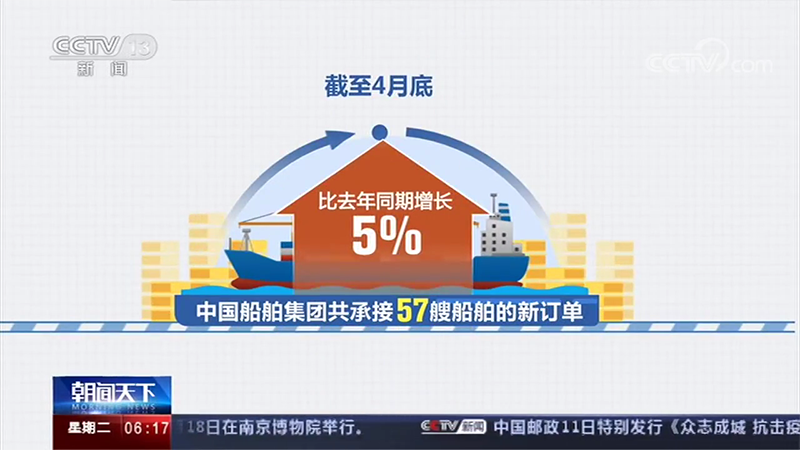 ????截至4月底,中國(guó)船舶集團(tuán)共承接57艘船舶的新訂單,比去年同期增長(zhǎng)5%。