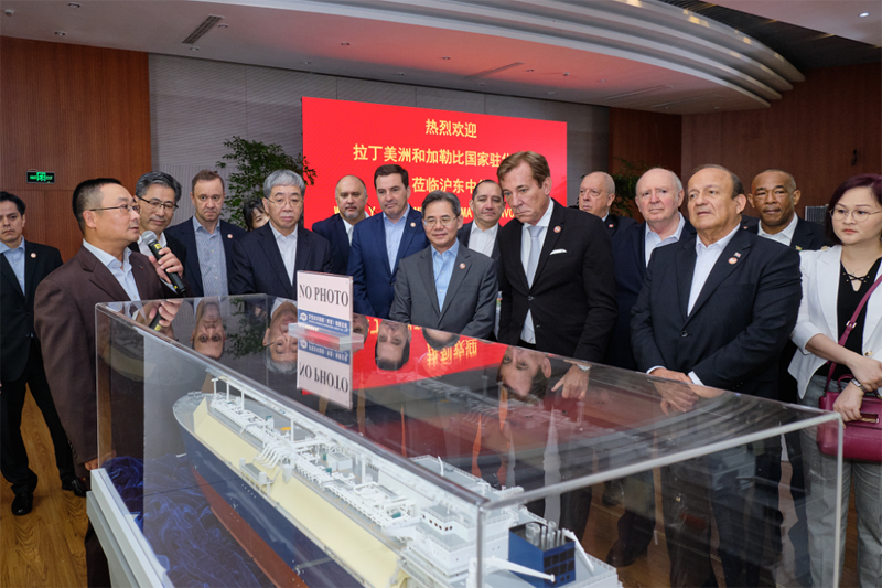 9月15日,在中國(guó)外交部副部長(zhǎng)鄭澤光、中國(guó)船舶集團(tuán)董事長(zhǎng)雷凡培的陪同下,以烏拉圭駐華大使盧格里斯為團(tuán)長(zhǎng)的拉美和加勒比地區(qū)18個(gè)國(guó)家駐華使節(jié)代表團(tuán)到中國(guó)船舶集團(tuán)旗下上海長(zhǎng)興造船基地參觀考察。中國(guó)船舶集團(tuán)副總經(jīng)理孫偉、姜仁鋒參加活動(dòng)。