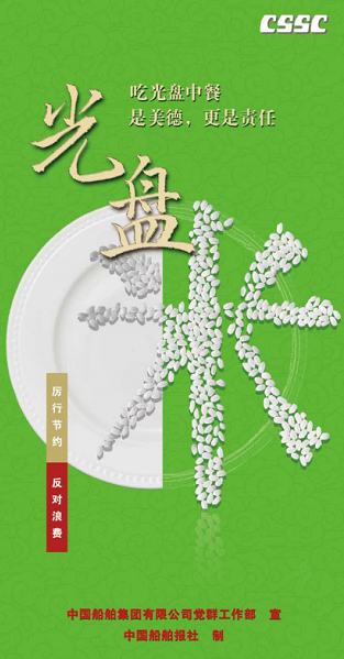 勤儉節(jié)約是中華民族的傳統(tǒng)美德,也是中國共產(chǎn)黨的優(yōu)良作風。為深入貫徹落實習近平總書記重要指示精神,中國船舶集團黨組對制止餐飲浪費作出全面部署,要求集團公司廣大黨員干部在厲行節(jié)約、反對浪費方面走在前列、作出表率,大力弘揚勤儉節(jié)約的光榮傳統(tǒng)。