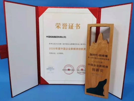 12月22日,由國務(wù)院國資委新聞中心、中央企業(yè)媒體聯(lián)盟聯(lián)合主辦的2020第八屆中國企業(yè)新媒體年會(huì)在北京舉行。本屆年會(huì)主題聚焦“融時(shí)代 · 新傳播”,中國船舶集團(tuán)有限公司因在“奮斗者”號(hào)融媒體報(bào)道中的創(chuàng)新表現(xiàn),榮獲“2020年度中國企業(yè)新媒體創(chuàng)新獎(jiǎng)”。