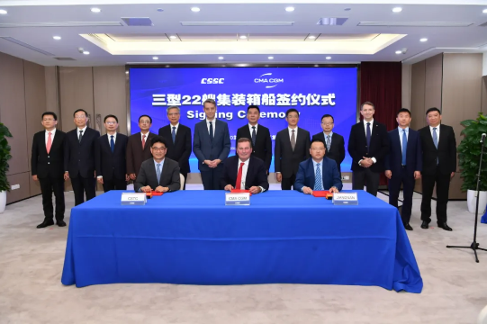 3型22艘綠色集裝箱船簽約,中國船舶集團(tuán)喜獲歷史最大單筆集裝箱船訂單。