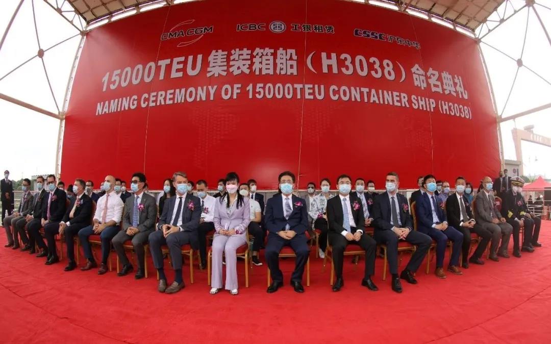 8月27日,由中國(guó)船舶集團(tuán)有限公司旗下滬東中華聯(lián)合中船貿(mào)易為法國(guó)達(dá)飛海運(yùn)集團(tuán)建造的15000TEU超大型集裝箱系列船首制船“達(dá)飛·和風(fēng)”號(hào)命名交付。這是中法兩國(guó)船海巨頭全面落實(shí)2019年中國(guó)國(guó)家主席習(xí)近平和法國(guó)總統(tǒng)馬克龍見(jiàn)證簽署的戰(zhàn)略合作框架協(xié)議的最新成果。同時(shí),也標(biāo)志著“CSSC超大型箱船譜系”又添“新丁”,實(shí)現(xiàn)了對(duì)全球超大型集裝箱船發(fā)展的引領(lǐng)。