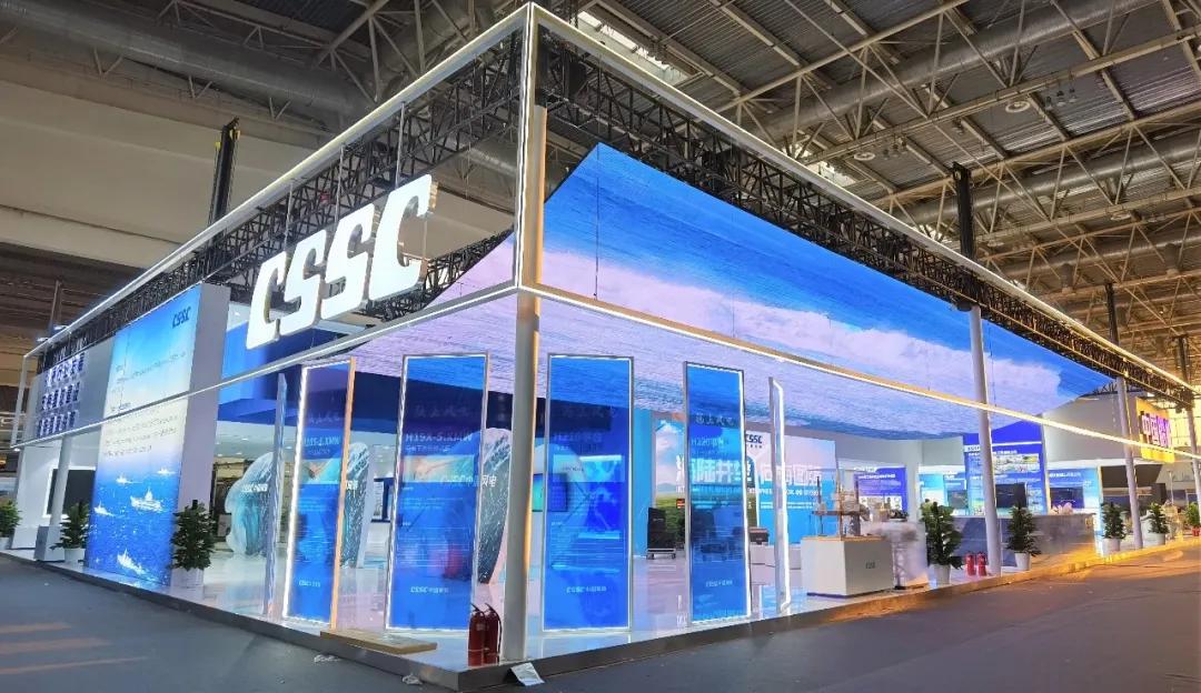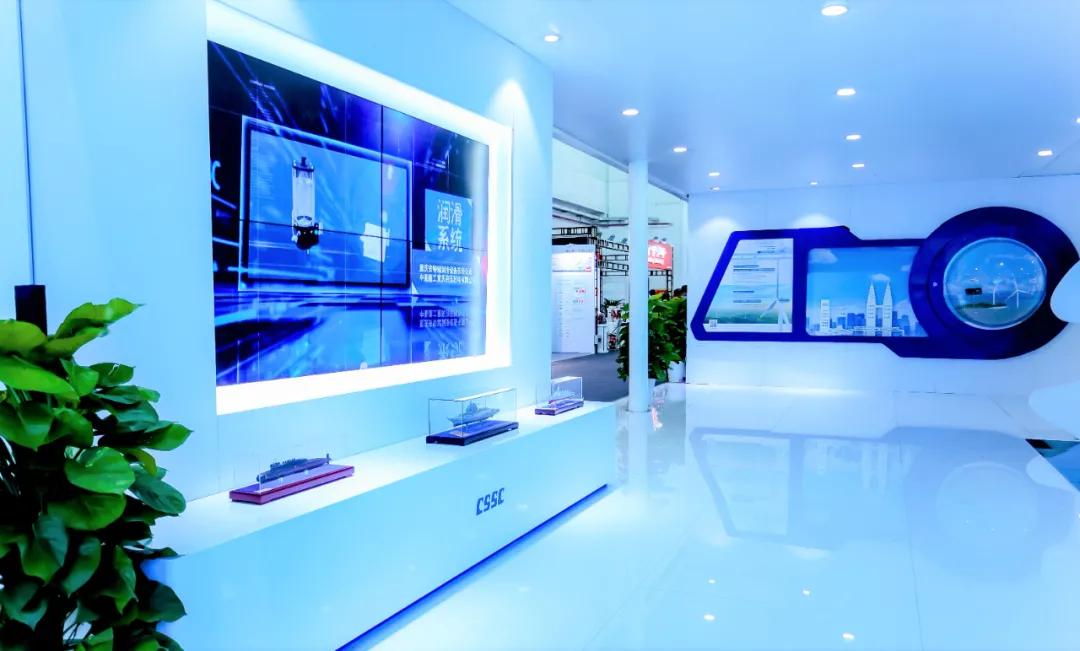 中國船舶集團(tuán)展臺摒棄了“傳統(tǒng)色彩矩陣”,用“深海藍(lán)”加 “風(fēng)機(jī)白”打造出大氣磅礴的開合式復(fù)合空間域,細(xì)節(jié)上則采用生態(tài)為先、大道至簡、科技為尚三大設(shè)計(jì)語言,將“風(fēng)傳送”“海推動”“碳排放”業(yè)務(wù)生態(tài)鏈條進(jìn)行了全方位的解構(gòu),吸引了眾多觀展人士駐足。