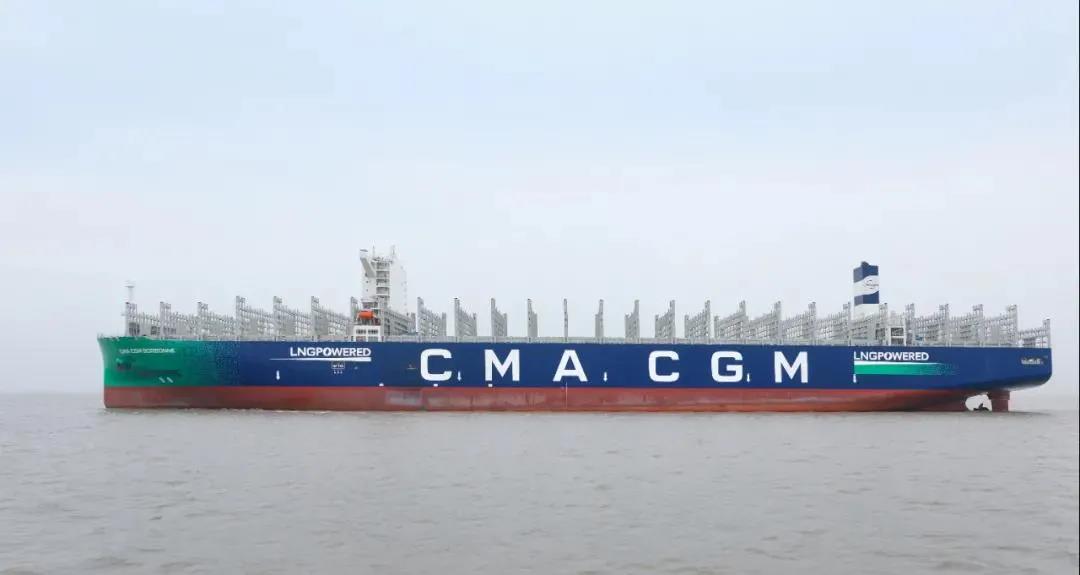 2021年6月29日,中國船舶集團(tuán)自主研發(fā)設(shè)計(jì)建造的全球首創(chuàng)最大、最先進(jìn)23000TEU雙燃料動(dòng)力集裝箱船“達(dá)飛·索邦”號(hào),在中國船舶集團(tuán)旗下滬東中華命名,并交付給法國達(dá)飛海運(yùn)集團(tuán)。