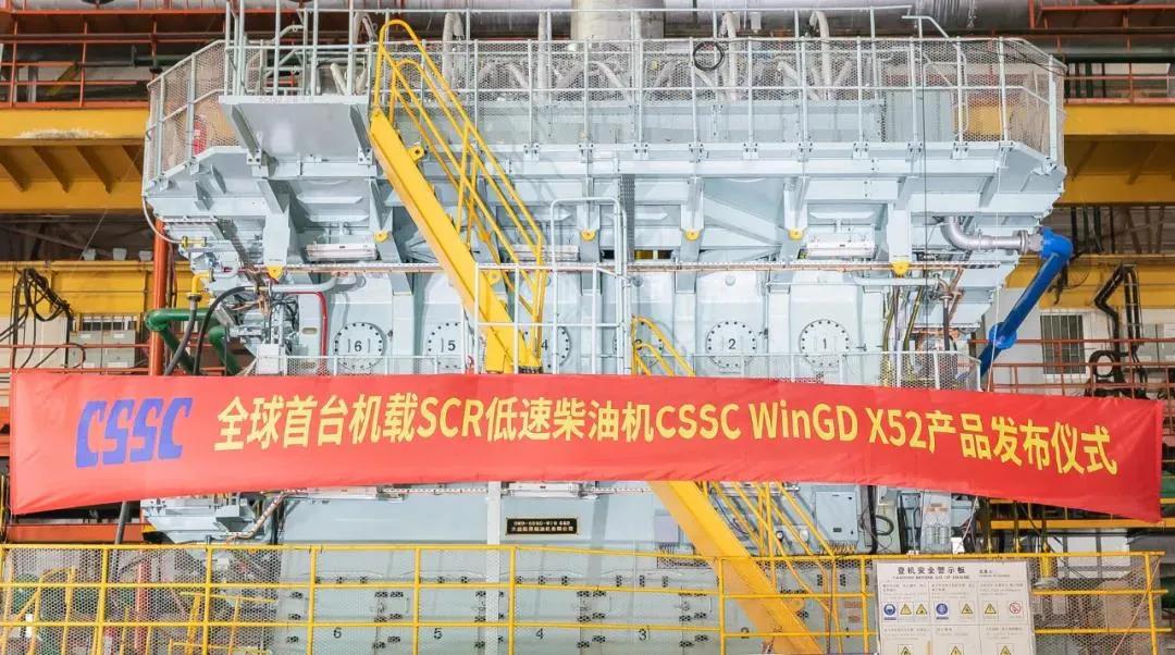 2021年7月22日,由中國船舶集團(tuán)旗下中船動(dòng)力集團(tuán)自主研發(fā)、大連船柴建造的全球首臺(tái)機(jī)載SCR(選擇性催化還原系統(tǒng))船用低速機(jī)CSSC WinGD X52正式向全球發(fā)布。