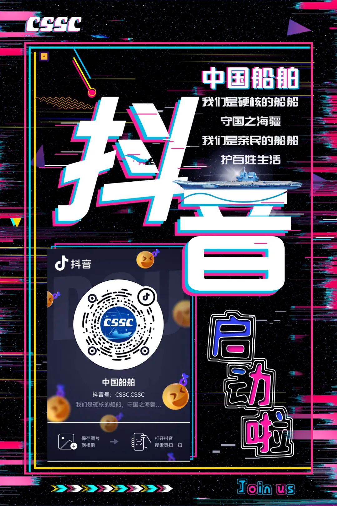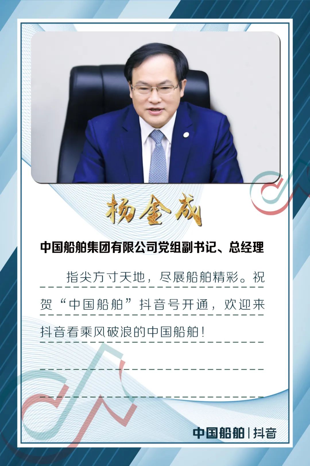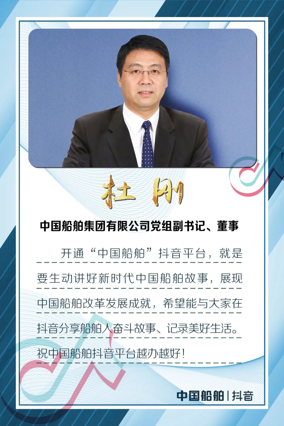 今天,中國船舶官方抖音平臺正式開通,是集團公司構(gòu)建全媒體宣傳矩陣的重要舉措,是社會各界關心海洋、認識海洋、經(jīng)略海洋的重要平臺,是弘揚軍工精神和中國船舶“三大精神”的重要陣地。