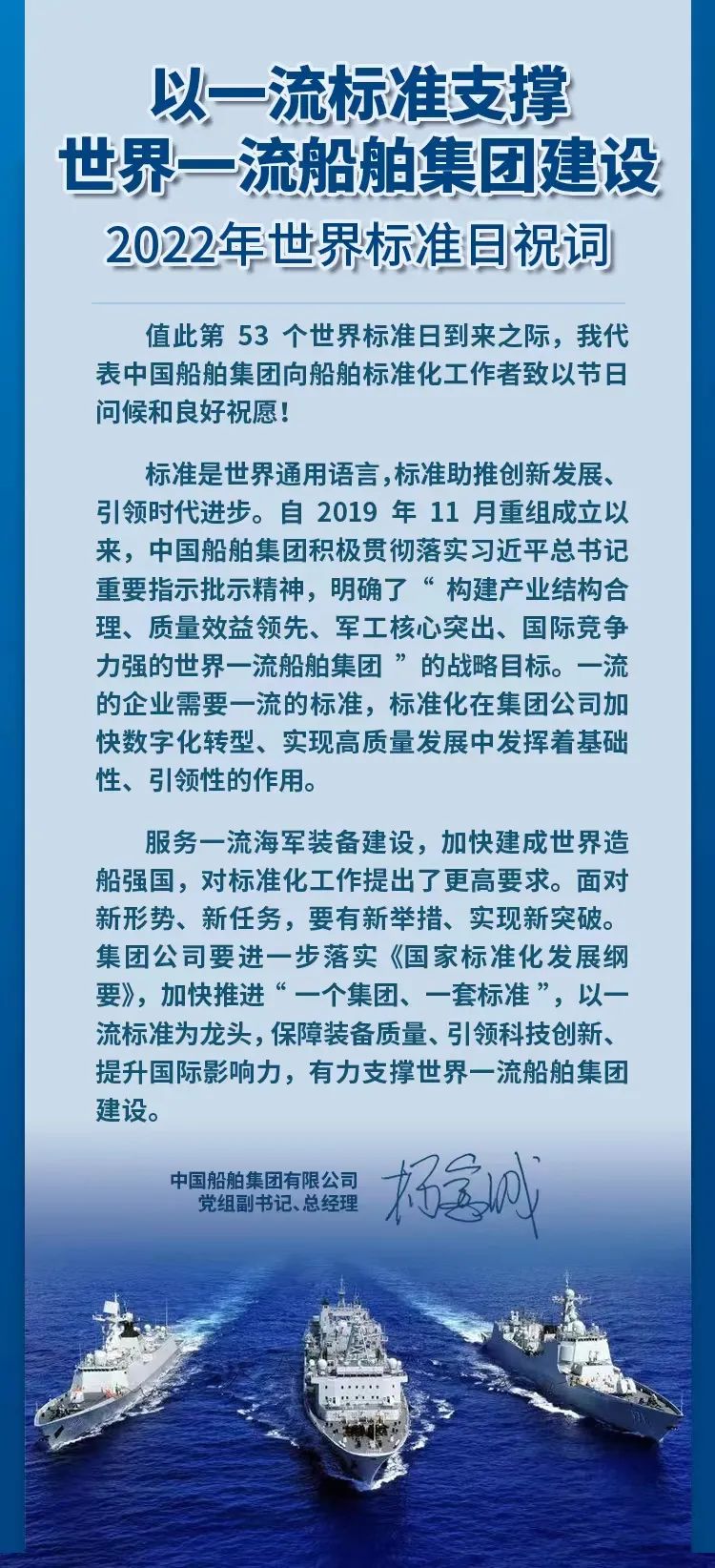 10月14日,中國船舶集團舉行第53屆世界標(biāo)準(zhǔn)日主題活動,主題為“以一流標(biāo)準(zhǔn)支撐世界一流船舶集團建設(shè)”