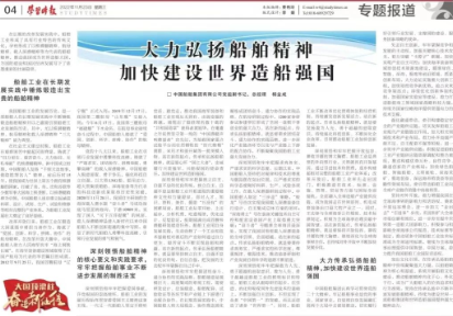11月23日,中共中央黨校主辦的以思想理論宣傳為主旨的中央級大報《學(xué)習(xí)時報》刊發(fā)了中國船舶集團(tuán)有限公司黨組副書記、總經(jīng)理楊金成署名文章《大力弘揚(yáng)船舶精神 加快建設(shè)世界造船強(qiáng)國》。