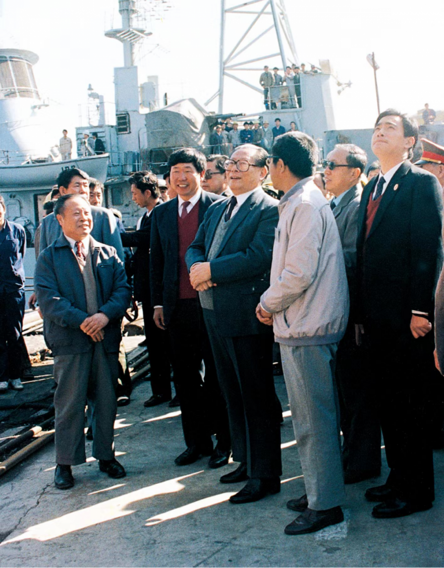 江澤民同志曾先后三次到江南造船視察。圖為1994年4月29日,江澤民同志視察江南造船。據(jù)相關人士回憶,當時江澤民同志視察江南有兩個原因,一是“五一”節(jié)快要到了,江澤民同志要看望工人階級,就選擇了江南造船,因為江南造船是產業(yè)工人的搖籃;第二個原因是112艦計劃當年5月8日前交艦,交艦前江澤民同志要先視察。