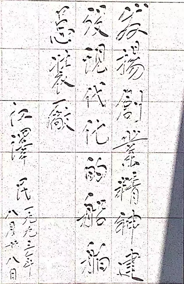 1993年8月28日,江澤民同志為大船集團題詞“發(fā)揚創(chuàng)業(yè)精神,建設現(xiàn)代化的船舶總裝廠”。
