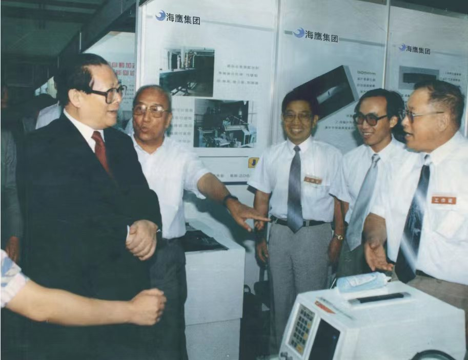 江澤民同志曾參觀系統(tǒng)工程研究院、中船電科旗下海鷹公司產品。圖為1995年,江澤民同志參觀海鷹公司展臺。
