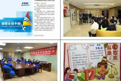 風(fēng)帆公司、綜合院等單位發(fā)布合規(guī)手冊,組織簽署合規(guī)承諾和合規(guī)考試;中船澄西、投資公司、七一一所、七二六所等單位精心制作并設(shè)置憲法宣傳展板;江南造船、中船九院等單位開展憲法法律知識問答,實現(xiàn)以考促學(xué);廣州公司持續(xù)開展“送法進(jìn)校園”憲法宣傳活動,將法治學(xué)習(xí)延伸到所屬技校、幼兒園;七一〇所、七一五所等單位開展法律咨詢志愿服務(wù)活動,對外樹立良好的“法治形象”;駐香港企業(yè)中船資本、中船租賃大力宣傳憲法及香港基本法、香港國安法,提升員工憲法法治意識。