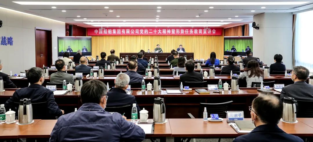 1月30日,中國船舶集團有限公司召開黨的二十大精神暨形勢任務教育宣講會,動員集團上下全面準確領會黨的二十大精神,深刻認識當前世界百年未有之大變局,更好把握當前國際國內形勢,進一步團結帶領廣大干部職工踔厲奮發(fā)、勇毅前行,加快推進世界一流船舶集團建設。中國船舶集團黨組副書記、總經(jīng)理楊金成主持會議,黨組副書記、董事杜剛,黨組成員、副總經(jīng)理孫偉,紀檢監(jiān)察組組長、黨組成員李佳穎,黨組成員、總會計師賈海英,黨組成員、副總經(jīng)理盛紀綱出席會議。會議邀請十三屆全國政協(xié)常委、提案委員會副主任,中央軍委聯(lián)合參謀部原上將副總參謀長戚建國作宣講報告。