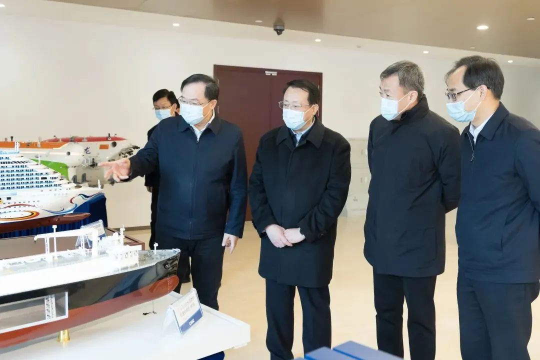 中國船舶集團總部于2021年12月遷駐上海,去年經(jīng)營業(yè)績再創(chuàng)新高。在溫剛、楊金成的陪同下,龔正察看了中國船舶集團重點船舶產(chǎn)品模型,深入了解中國船舶集團深化科技創(chuàng)新、實施重大項目,對標(biāo)國際先進、夯實技術(shù)基礎(chǔ)等方面情況。