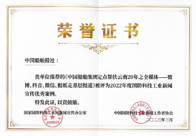 《中國船舶集團(tuán)定點(diǎn)幫扶云南20年之全媒體——微博、抖音、微信、報紙走基層報道》通過微博、抖音、微信、報紙等全媒體平臺創(chuàng)新形式,將軍工央企宣傳報道助力脫貧攻堅、推進(jìn)鄉(xiāng)村振興、踐行社會責(zé)任優(yōu)秀成果提升到一個全新的媒體融合報道領(lǐng)域。