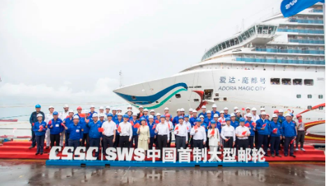 9月12日下午,中國首制大型郵輪“愛達(dá)·魔都號”經(jīng)過六天五夜1630海里的海上航行,穩(wěn)穩(wěn)靠泊于中國船舶集團(tuán)旗下外高橋造船4號碼頭。中國船舶集團(tuán)黨組書記、董事長溫剛,黨組成員、副總經(jīng)理孫偉,紀(jì)檢監(jiān)察組組長、黨組成員李佳穎到碼頭迎接。