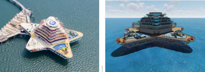 以濱海城市為依托,該方案重點(diǎn)建設(shè)需求旺盛、基礎(chǔ)好、見(jiàn)效快的“海洋文旅+深海養(yǎng)殖+海上風(fēng)電+海洋信息管網(wǎng)”4個(gè)要素單元,釋放旅游、養(yǎng)殖、綠色能源耦合效應(yīng)。綜合體采用模塊化設(shè)計(jì)、區(qū)域化協(xié)同部署,由濱海向深遠(yuǎn)海帶狀輻射,布局建設(shè)游輪游艇群、養(yǎng)殖文旅平臺(tái)、深海養(yǎng)殖產(chǎn)業(yè)園、分布式海上風(fēng)電場(chǎng)及智能微電網(wǎng)、深海移動(dòng)養(yǎng)殖工廠(chǎng)和海洋信息管網(wǎng)等風(fēng)漁文旅結(jié)合項(xiàng)目。以郵輪游艇連接海上設(shè)施,構(gòu)建海上旅游娛樂(lè)交通網(wǎng),以中小型郵輪航線(xiàn)實(shí)現(xiàn)沿海城市綜合體間串聯(lián),構(gòu)建沿海城市海上旅游觀光帶,同時(shí)培育郵輪與康養(yǎng)休閑岸?;?dòng)融合模式,捕捉、帶動(dòng)、滿(mǎn)足多元化潛在消費(fèi)需求,打造風(fēng)漁文旅等一二三產(chǎn)業(yè)融合新業(yè)態(tài),形成沿海藍(lán)色海洋經(jīng)濟(jì)帶。