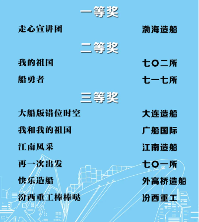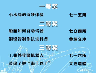 由中國(guó)船舶集團(tuán)黨群工作部指導(dǎo),中國(guó)船舶集團(tuán)新聞宣傳中心/中國(guó)船舶報(bào)社承辦的中國(guó)船舶集團(tuán)第二屆短視頻大賽圓滿落幕。經(jīng)過前期篩選,網(wǎng)絡(luò)投票,并特邀國(guó)務(wù)院國(guó)資委新聞中心、國(guó)防科工局新聞宣傳中心、中央電視臺(tái)、微博政務(wù)、中國(guó)船舶集團(tuán)黨群工作部專家評(píng)審,大賽最終評(píng)出一等獎(jiǎng)5部,二等獎(jiǎng)10部,三等獎(jiǎng)23部,同時(shí)評(píng)出優(yōu)秀組織獎(jiǎng)單位6家。名單如下,快來圍觀!