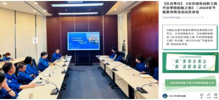 5月13日至19日是第34個(gè)全國節(jié)能宣傳周,中國船舶集團(tuán)結(jié)合實(shí)際,印發(fā)了《中國船舶集團(tuán)有限公司關(guān)于組織開展2024年全國節(jié)能宣傳周和全國低碳日活動(dòng)的通知》,圍繞“走實(shí)綠色創(chuàng)新之路,開啟零碳船舶之旅”和“‘碳’索綠水青山,‘船’遞碧海藍(lán)天”主題,在全集團(tuán)范圍內(nèi)開展了形式多樣的主題活動(dòng)。