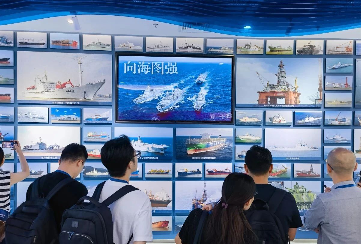 “這里是中國(guó)船舶設(shè)計(jì)的搖籃,創(chuàng)造了國(guó)內(nèi)民用船舶及海洋工程裝備設(shè)計(jì)領(lǐng)域的近百項(xiàng)第一?!彪S著七〇八所講解員的介紹,我國(guó)首艘自主建造的極地科考破冰船“雪龍2”號(hào)、全球首艘LNG動(dòng)力23000TEU集裝箱船、“造島神器”天鯤號(hào)自航絞吸挖泥船等國(guó)之重器,一一展現(xiàn)在媒體記者們面前。