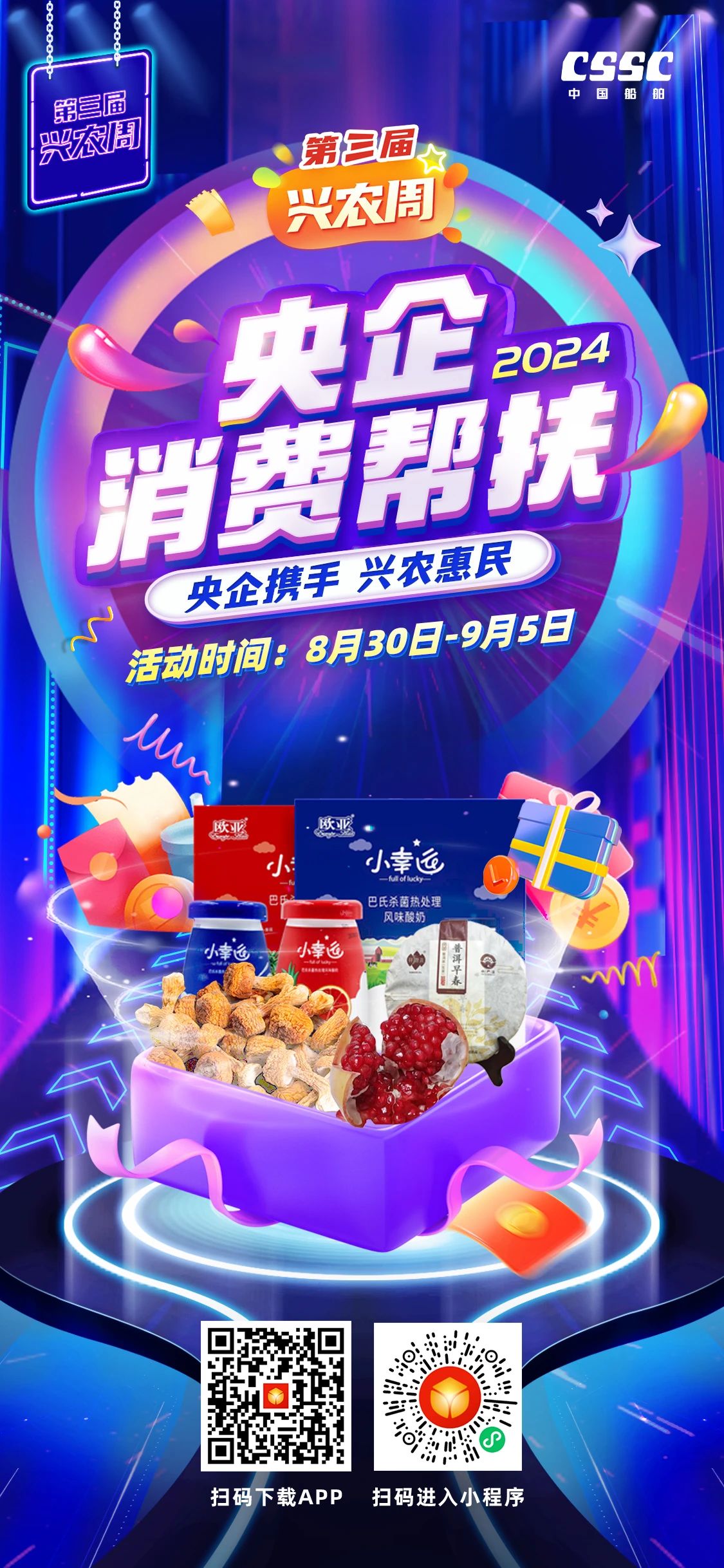 百家央企聚合力,消費(fèi)幫扶促振興。8月30日~9月5日,第三屆“央企消費(fèi)幫扶興農(nóng)周”熱情來襲、盛大啟動!