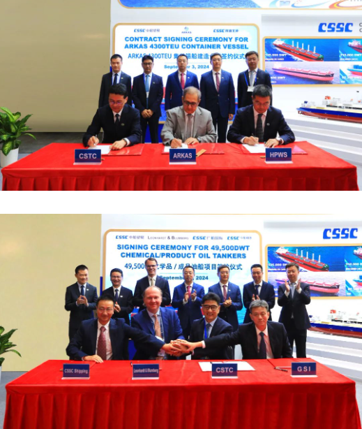 此次展會上,集團公司有關(guān)成員單位負(fù)責(zé)人率隊赴展會開展重點船海項目經(jīng)營洽談并拜訪當(dāng)?shù)睾椭苓厙抑饕蛻?。集團公司以“高端綠色、領(lǐng)跑未來”為參展主題,展臺設(shè)置了集團總體區(qū)、高端綠色船舶區(qū)、先進(jìn)動力配套區(qū)共3個展示區(qū)域,重點展示了首艘國產(chǎn)大型郵輪、27.1萬立方米超大型LNG(液化天然氣)運輸船、10800車LNG雙燃料汽車運輸船、全球首艘LNG雙燃料VLCC(超大型油船)、21萬噸氨燃料散貨船、9.3萬立方米超大型全冷式液化氣船等一系列技術(shù)含量高、全球競爭力強的高端綠色船型,以及CPGC-WinGD 10X92DF-M甲醇雙燃料發(fā)動機、船用供氣系統(tǒng)、船用碳捕捉系統(tǒng)、船舶新能源動力系統(tǒng)解決方案等滿足IMO(國際海事組織)當(dāng)前和未來排放要求的先進(jìn)動力配套設(shè)備,充分彰顯了中國船舶集團的國際化品牌形象及引領(lǐng)國際船舶市場創(chuàng)新發(fā)展的澎湃動力。