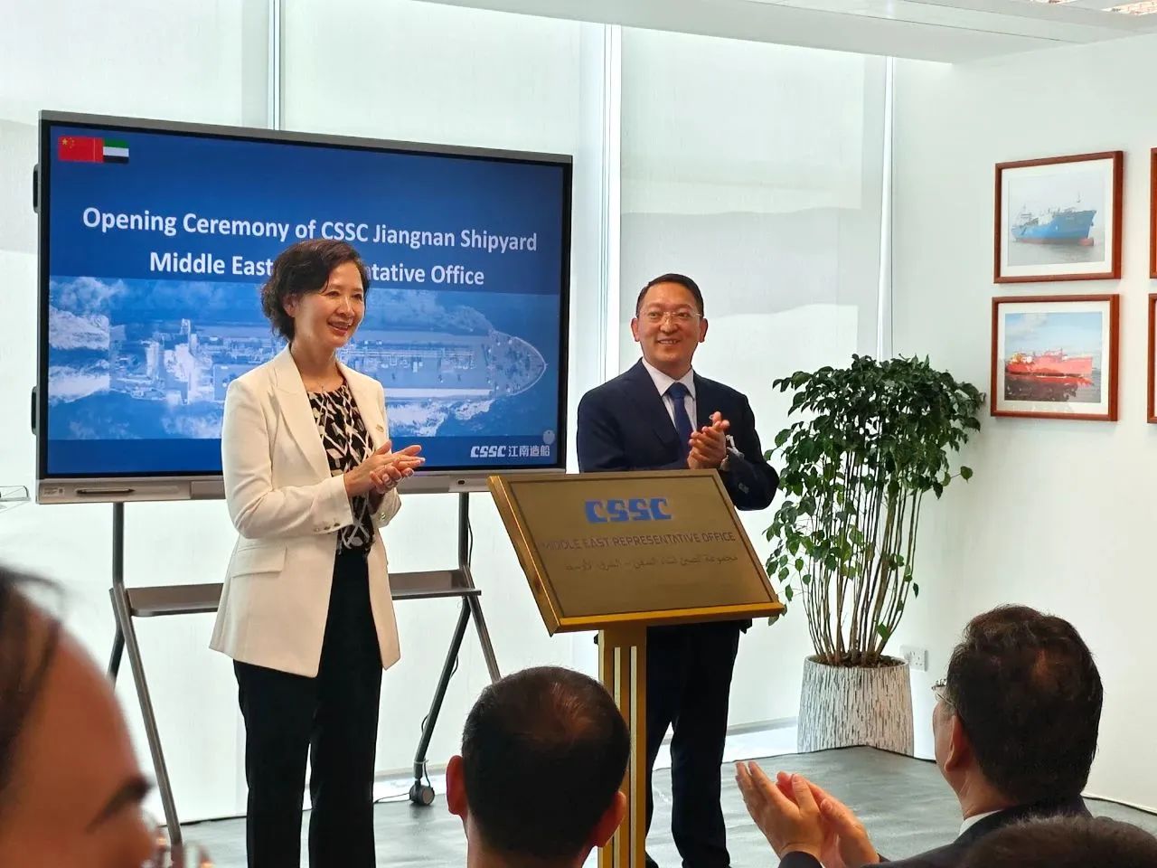 10月10日,中國(guó)船舶集團(tuán)江南造船中東代表處揭牌儀式,在阿聯(lián)酋首都阿布扎比舉行。