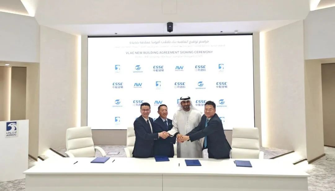 揭牌儀式后,江南造船與阿布扎比國(guó)家石油集團(tuán)物流和服務(wù)公司(ADNOC L&S)和萬(wàn)華化學(xué)集團(tuán)的合資公司AW航運(yùn)公司續(xù)簽了2艘93000立方米超大型液氨運(yùn)輸船(VLAC) 。