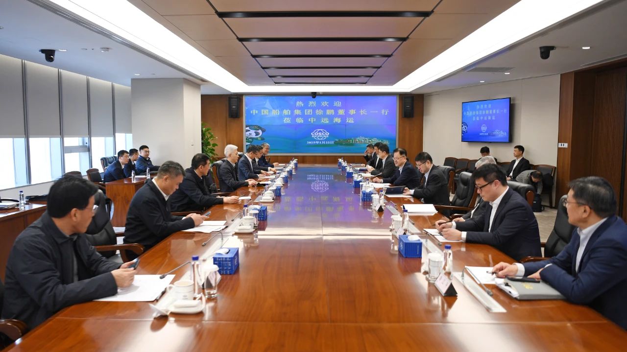1月22日,中國船舶集團(tuán)有限公司黨組書記、董事長徐鵬一行拜會中國遠(yuǎn)洋海運(yùn)集團(tuán)有限公司黨組書記、董事長萬敏。雙方圍繞深入貫徹落實黨的二十屆三中全會精神和中央經(jīng)濟(jì)工作會議精神、加快綠色和數(shù)字化轉(zhuǎn)型、攜手推動我國航運(yùn)業(yè)和造船業(yè)高質(zhì)量發(fā)展等主題,進(jìn)行了深入交流,并達(dá)成了共識。中船集團(tuán)黨組成員、副總經(jīng)理胡賢甫,中遠(yuǎn)海運(yùn)集團(tuán)黨組成員、副總經(jīng)理、總會計師孫云飛參加會談。