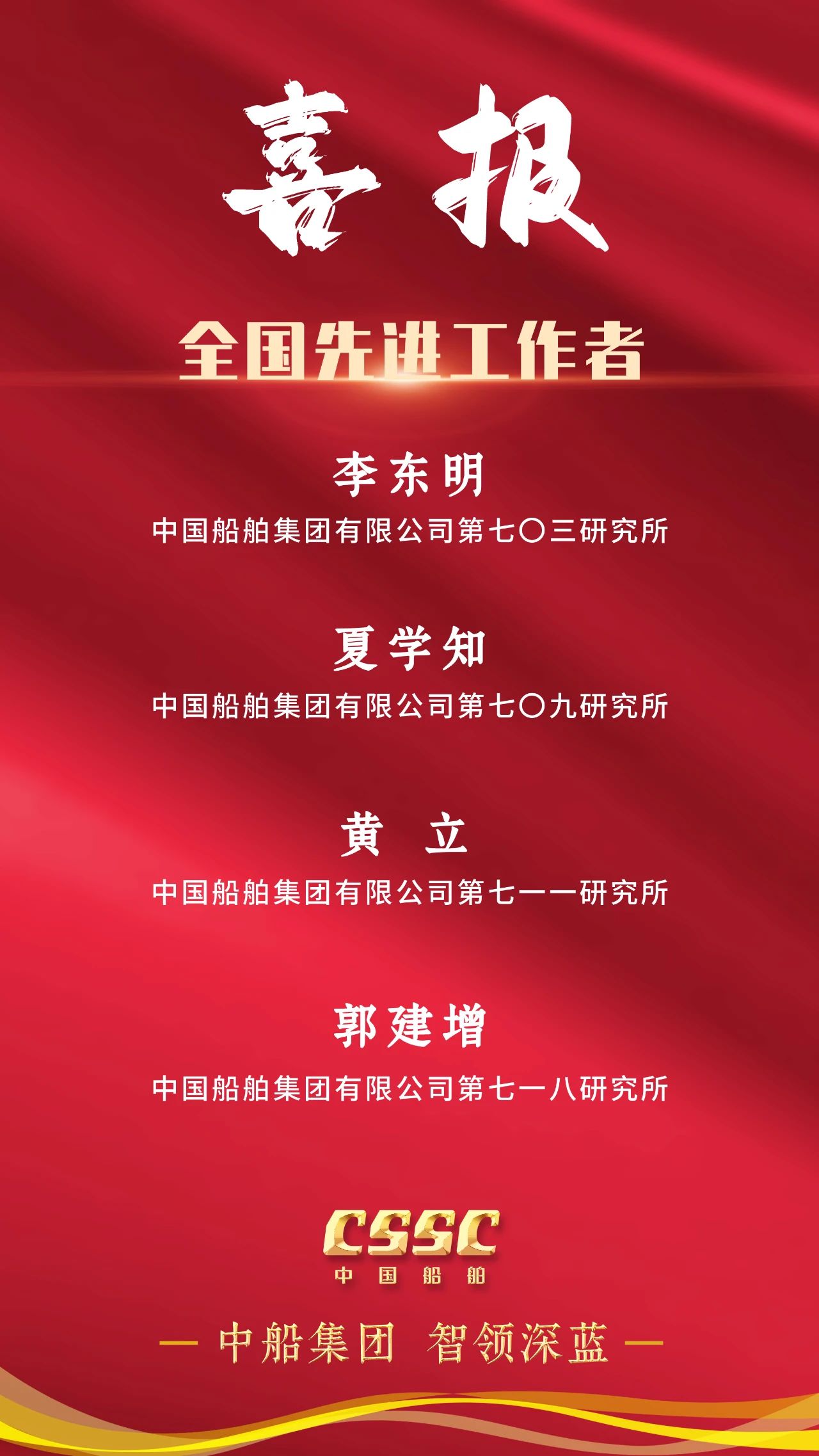 4月28日上午,慶祝中華全國總工會成立100周年暨全國勞動模范和先進(jìn)工作者表彰大會在人民大會堂隆重舉行。大會宣讀了《中共中央、國務(wù)院關(guān)于表彰全國勞動模范和先進(jìn)工作者的決定》。中船集團(tuán)5人被授予全國勞動模范稱號,4人被授予全國先進(jìn)工作者稱號。